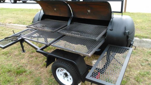 150 gallon standard price $2,000. Comes complete with 13″ tires, two doors, four sliding racks or one door , two racks , swinging tables , 2″ HITCH, safety chain, lights and more. 150 deluxe price $2500. Comes complete with… two propane burners with cover plates 13″ tires, two doors, four sliding racks or one door ,…